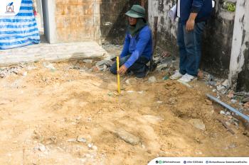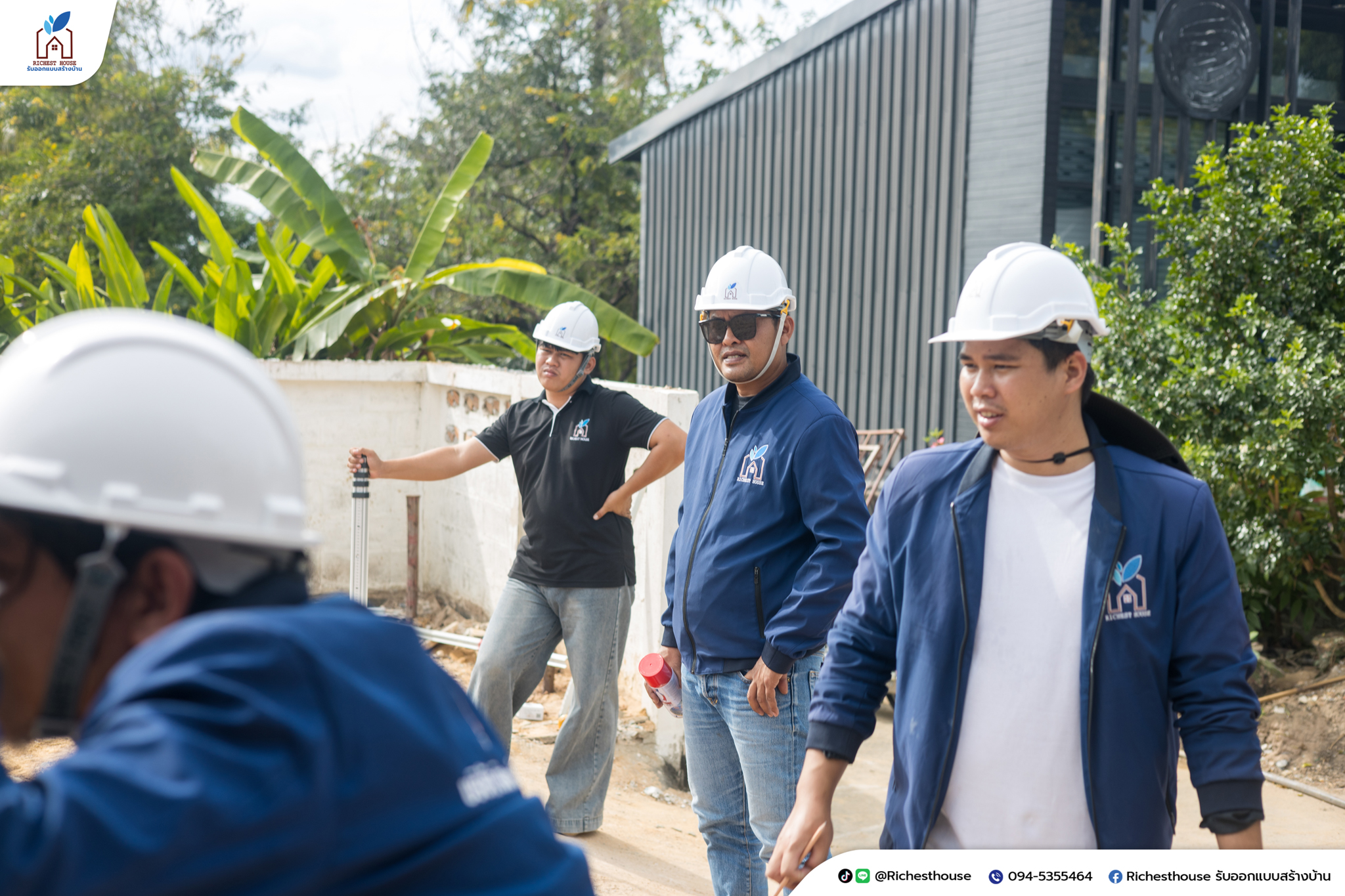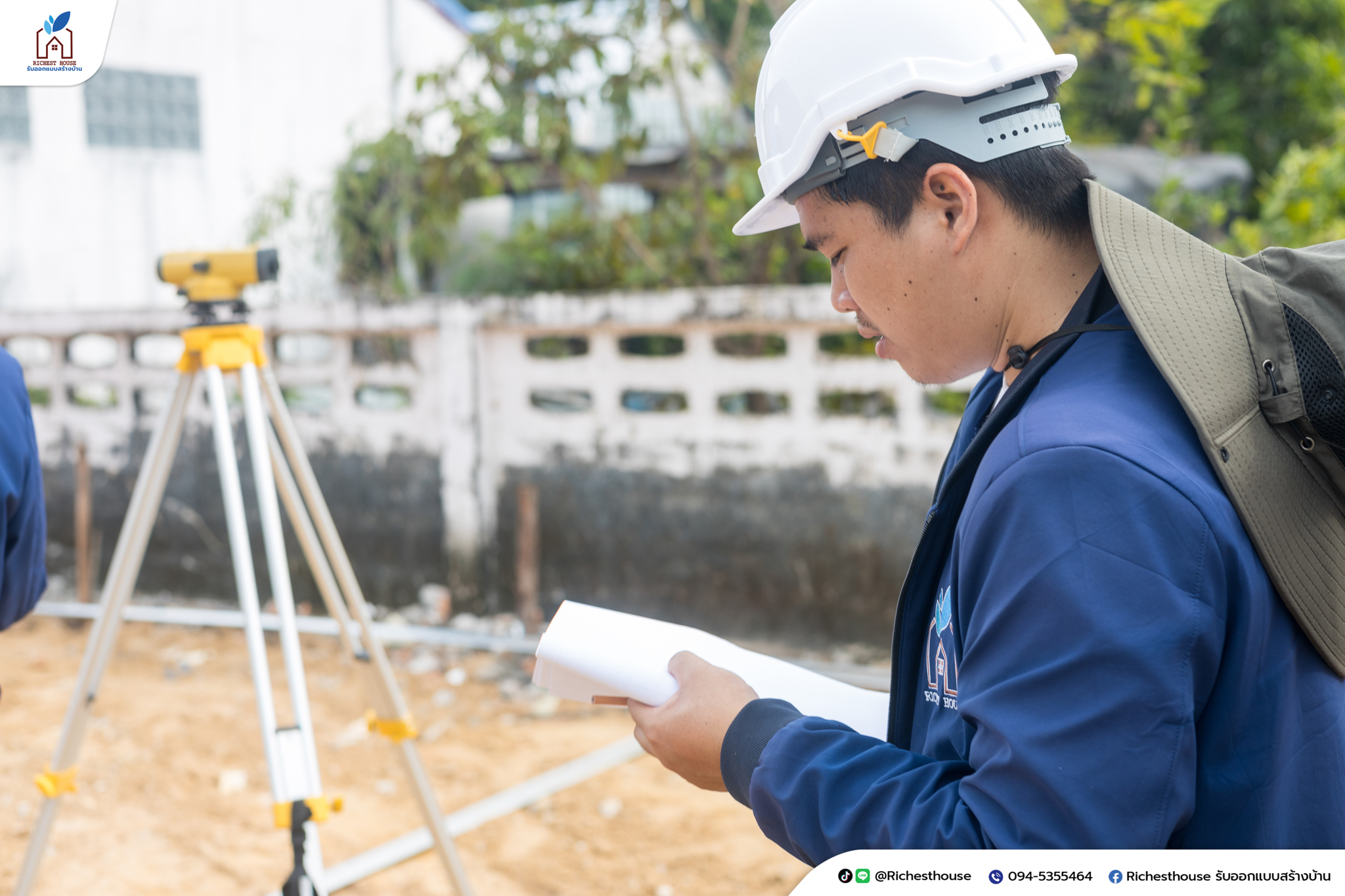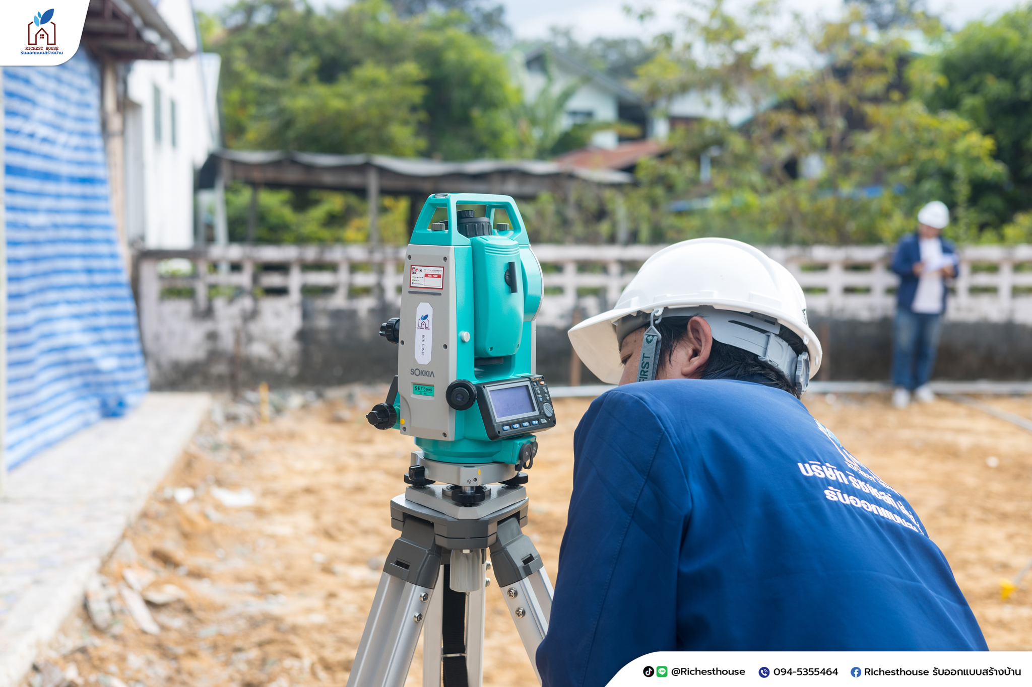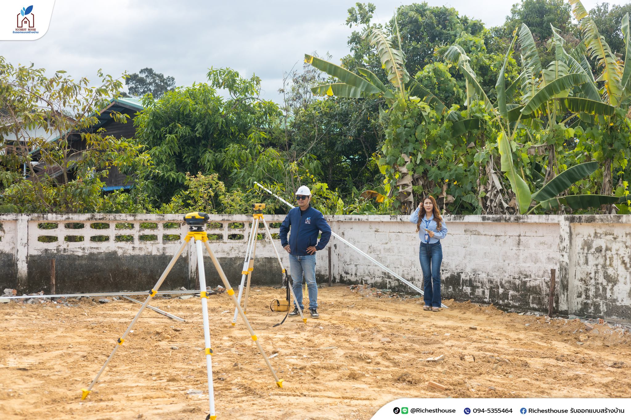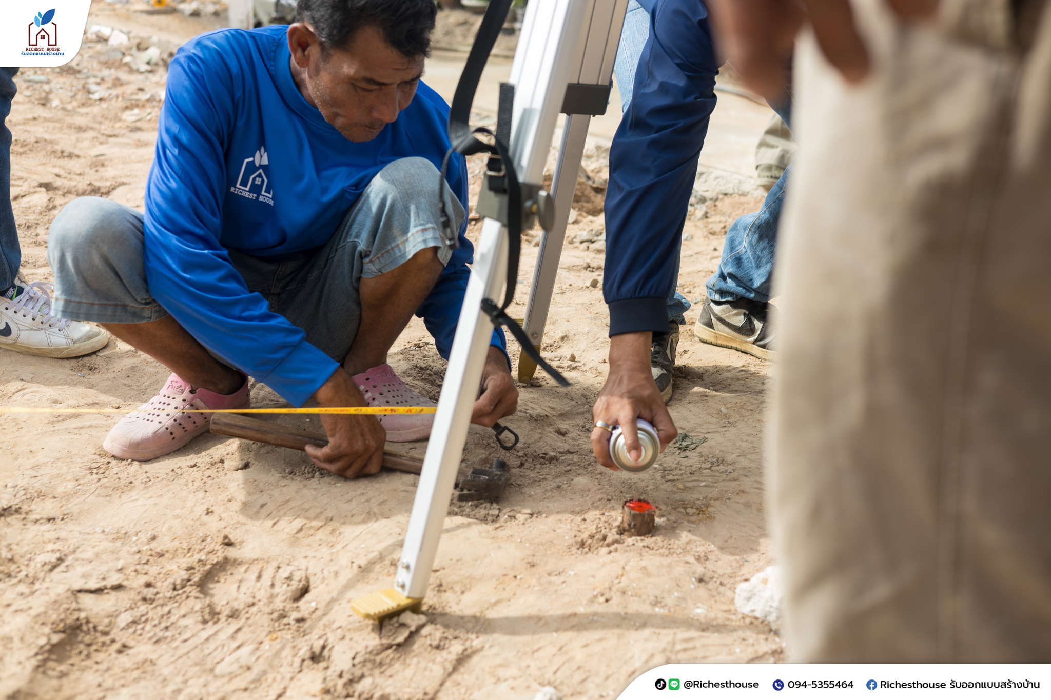 การชี้จุดวางผังบ้านก่อนเตรียมยกเสา